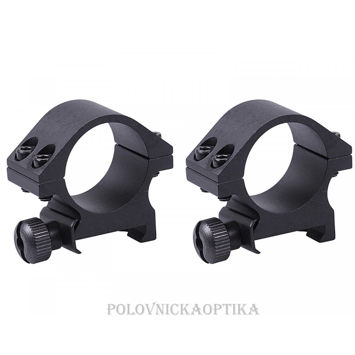 Dvojdielna montáž na weaver lištu s krúžkami priemeru 1″ (25,4 mm) je určená na pevné a spoľahlivé uchytenie taktických svetiel, laserov alebo optiky.
